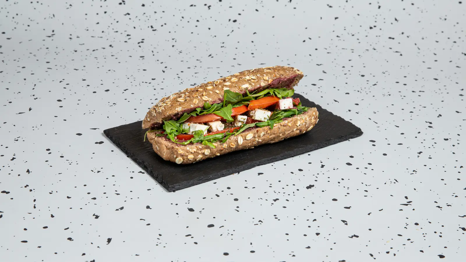 Με πάστα ελιάς, φέτα, ντομάτα, ρόκα, ελαιόλαδο & ρίγανη