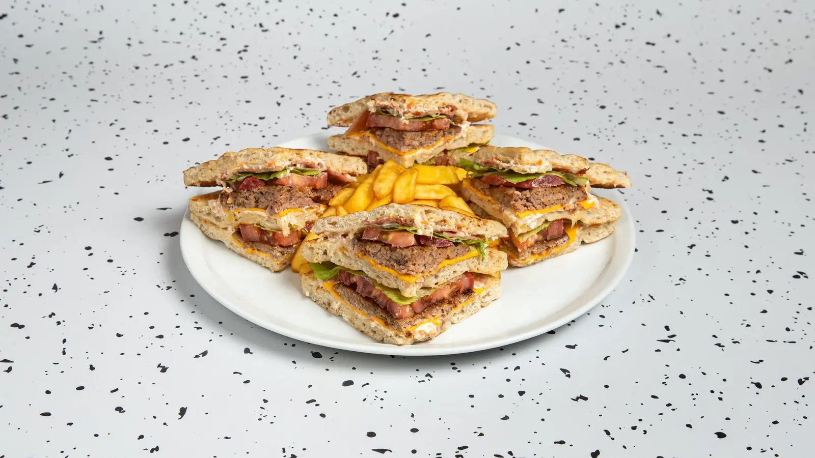 Με 3 αφράτες πίτες, μπιφτέκι 200gr, μπέικον, cheddar, ντομάτα, iceberg & σως coleslaw. Συνοδεύεται από πατάτες τηγανητές